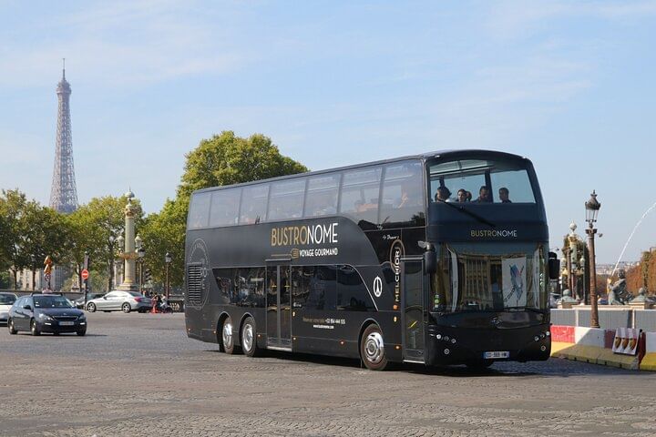 While on board, savor an exquisite three-course meal, a true taste of gourmet French cuisine. Enjoy quick Paris landmarks tours one bite and one sip at a time. Quick Arc de Triomphe tour while on the bus, and sparkling Eiffel Tower views.